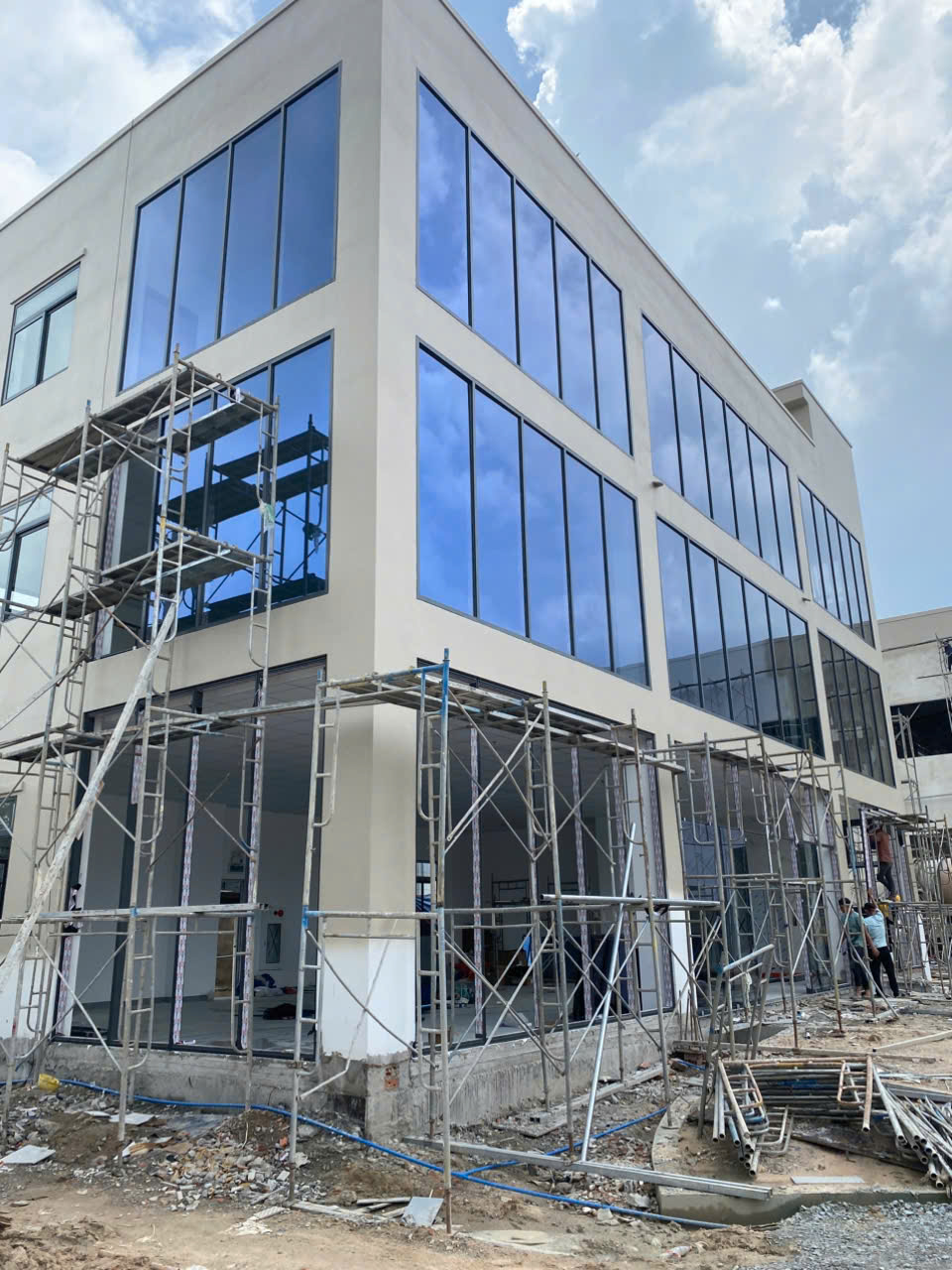 NHÀ XƯỞNG LẮP VÁCH MẶT DỰNG KÍNH SOLAR NHÔM DÀY 2MM VÀ CỬA NHÔM XINGFA 3000 MÉT LẮP TẠI BÀU BÀNG
